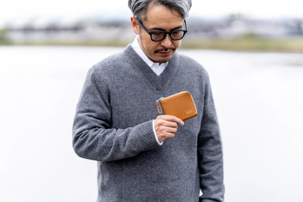 Youtubeで紹介しました。 カワニシカバンの定番カラー“サンドレザー”の長財布 ファスナーでL字型にひらくコンパクトな長財布 https://www.youtube.com/watch?v=S7mJ3Q7LCWg&t=408s L型財布ricchyL[リッチーL]は、1万円札がギリギリ入る大きさで作られたコンパクトな長財布です。「長財布なのにスリムでコンパクト」を叶えるためにいくつもの工夫を凝らしたカワニシカバンの自信作です。 「長財布なのにコンパクト」を叶えるために、小銭入れのファスナーをなくしました。ファスナーを付けなくても小銭が飛び出さないよう試作を重ね、構造を工夫しています。 「長財布なのにスリム」なフォルムをキープできる秘密は、可動式のカード入れ。大きく動くカード入れが厚さを調節してしてくれます。 オリジナル素材“サンドレザー”4色 【新商品】カバン職人おすすめの新作レザーが完成したので、魅力を全力でお伝えします! 皮を革へと加工するタンナー「セトウチレザー」さんと共同開発した「サンドレザー」は、革表面を毛羽立たせるよう加工することで天然の木目のような模様がついています。 触ると少しざらつきがある模様のおかげで、キズが目立ちにくく味わい深い雰囲気があります。 ↓サンドレザーについてくわしくはこちらから https://shop-kawanishikaban.myshopify.com/pages/leather 大容量なのにコンパクトの秘密は「可動式ポケット」 ricchyL[リッチーL]は小銭入れとカード入れの付け方を工夫することで、今までの長財布よりスリムでスマートに出来上がりました。 ポケットが動いて厚みを均等に ポケットを可動式にすることで中身に合わせてポケットが移動し、財布の厚みを均等にしてくれます。沢山入れてもスリムなシルエットです。 ファスナーをなくした小銭れ 薄いシルエットを保つために小銭入れにはファスナーをつけていません。ファスナーをつけなくても小銭が飛び出さないよう、小銭入れは本体より少しだけ低く製作しています。 本体のファスナーを閉じることで小銭入れの口もしっかりと閉まり、本体のファスナーを開けると同時に小銭入れの口も開くので、お金へのアクセスがワンステップで叶えられます。 可動式だからお財布のメンテナンスも簡単 可動式のポケットはメンテナンスにも便利。ポケットを取り出すことで、奥までしっかりと拭くことができます。 小銭入れと9個のポケット ①小銭入れ 中央にある小銭入れは、財布の中身を仕切る役目もあります。 お札とレシートを分けたりすることで財布の中身をスッキリと整理できます。 ②可動式カードポケット カードを縦に入れるポケットが4つあります。安心の収納量です。 ③固定式カードポケット カードを縦に入れるポケットが4つあります。 ④ロングポケット(マチのない方) マチのない方には、お札を入れます。コンパクトさを追求し、一万円札ぴったりに製作しております。 ⑤ロングポケット(マチのある方) マチのある方にレシートや領収書、カードポケットに入りきらないカードを収納できます。※一万札ギリギリの大きさで製作しているためマチ側にお札を入れると、ファスナーに引っかかる場合がございます。 ⑥マチ 「マチ」の内寸法は約3.5cm。スリムなお財布の容量を増やす工夫です。 レザーの色に合わせて選ばれた糸 カワニシカバンのレザーアイテムは、革本来の質感を残したものから華やかに染め上げられたカラーまで、数種類のお色で製作しております。 本革は染め上がりにも個性があるため、革と色の合う糸を選び、毎回糸を変える事は効率の面から見ると良いことではないでしょう。...