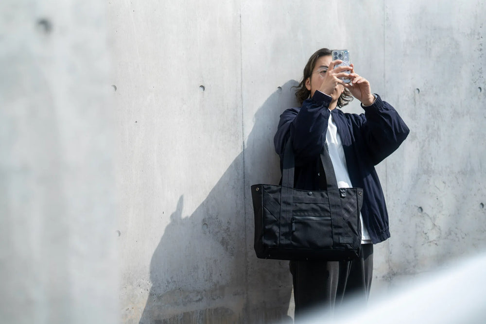 bov CORDURA® Ballistic Nylon ボブ コーデュラ® ひもを絞るだけで完成する、独特の立体感が魅力の巾着型トートバッグ。コーデュラ®のタフさと3wayの使い勝手で、日常をスタイリッシュに支えます。 Concept 巾着型トートバッグとして単体でも使えるほか、ショルダーパーツ(別売)を加えることでボンサックやリュックとしても使える3wayバッグです。 縦長フォルムは500mlペットボトルもすっきり収まるサイズ感。汚れや水に強いコーデュラ®バリスティックナイロンで仕上げた、クールでタフな一台です。 Detail 両サイドには止水ファスナーを装備。入れ口のひもを開けなくても荷物を取り出せます。ファスナー引き手には牛本革を縫い付け、高級感と持ちやすさをプラスしています。 背面には縦21cm×横13.5cmのポケット付き。大型スマートフォンもサッと収納できます。 バッグ下のDカンは左右両側に装備。ショルダーパーツを左右どちらにも取り付けられ、右利き・左利きを問わずお使いいただけます。 Material 表生地には、コーデュラ®バリスティックナイロンを採用。一般的なナイロンの約7倍の強度を持ち、摩耗・引き裂き・擦れに強い高耐久素材です。 裏地は視認性の高いカーキグレーのナイロン生地です。 持ち手とネームタグには栃木レザーを使用。ブラック金具と相まって高級感を演出します。 ※コーデュラ®タグのデザイン・位置は生産時期によって異なります。タグデザインや位置をご指定いただくことはできかねます。※レザーは天然素材の特性上、シワやシミ、傷など一つひとつ表面の風合いが異なります。コーデュラ®について詳しくはこちら 栃木レザーについて詳しくは こちら Color ブラック/カーキ/ネイビー Specification サイズ H 30 × W 28(上部) × D18(円直径) cm持ち手|長さ 9cm / 幅 2 cm 重量 260 g...