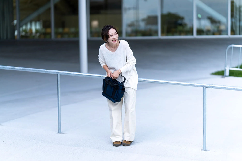 grabe mini[グレーブ ミニ]|コーデュラ® ガーデントートの機能美を、日常へ ガーデニングバッグの収納力を、日常にフィットする機能性へ。人気の「grabe[グレーブ]」をひとまわり小さく設計した〈grabe mini〉は、必要な荷物をすっきりまとめたい日常にちょうどいいサイズ感です。 新色「ネイビー」がコレクションに登場 清潔感があり知的な「ネイビー」がコレクションに加わりました。どんなスタイルにも馴染み、流行に左右されないタイムレスなカラーです。 整う心地よさを生む、13のポケット構造 外側ポケット×8、内側ポケット×5(うちペン差し×2)を備えた高い収納力。コンパクトなサイズながら、文庫本やタブレットも整理しやすく、小さなバッグとは思えない実用性を叶えます。 安心のファスナー付きトート 開口部にはファスナーを備え、荷物の飛び出しや小雨から中身を守ります。目隠しにもなり、通勤や外出時にも安心してお使いいただけます。 自立するフォルムが生む安心感 厚みのあるコーデュラ®バリスティックナイロンを採用。裏地がなくても自立し、底面は二重構造で安定感を確保しました。小ぶりながらも、しっかりとした佇まいを保ちます。 強く、美しく コーデュラ® × 牛革 一般的なナイロンの約7倍の強度を誇るコーデュラ®バリスティックナイロンと、使うほどに艶を増す牛革のコンビネーション。強さと品格を兼ね備えた、小さくても頼れるパートナーです。 洗練された遊び心 片側にあしらった「デイジーチェーン」は、アウトドアギアを吊るすベルトをモチーフに。本革製のDカンチャームをアクセントに添え、タフな印象をさりげなく街仕様へ昇華しました。 ショルダーパーツで広がる、持ち方のバリエーション 別売りのショルダーパーツを装着すれば、肩掛けや斜め掛けにも対応。シーンや装いに合わせて、自由なスタイルを楽しめます。 用途や好みに合わせて選べる、3種類のショルダーパーツをご用意しました。 25mm幅・ナイロンテープ製:シンプルで軽やかなタイプ38mm幅・ナイロンテープ製:Dカンとレザーパーツがアクセントになったデザイン21mm幅・栃木レザー製:風合い豊かな本革仕様 カラーバリエーション ブラック:品格と端正さを兼ね備えた定番カラー カーキ:アウトドアライクでありながら落ち着いた印象 ネイビー(新色):知的でクリーン、スタイルを選ばない万能カラー 商品詳細 仕様:収納ポケット(計13)・外側ポケット ×8・内側ポケット ×5(うちペン差し×2) 収納可能アイテム:A5小説、文庫本、8.3インチ程度のタブレット 素材:コーデュラ®バリスティックナイロン/裏地:ナイロン110ツイル・カーキグレーナイロン生産国:ベトナム高さ:24cm 幅:23cm マチ幅:12cm 持ち手の長さ:8.5cm重量:530g容量:6.5Lカラー:ブラック/カーキ/ネイビー ※仕様デザインについては、使いやすさ、品質向上のため予告なしに変更する場合がございます。ご了承ください。 【商品の返品について 】 商品にご満足いただけなかった場合、無償で返品を受け付けております。↓返品について詳しくはこちら。https://shop.kawanishikaban.com/pages/delivery YouTubeで紹介しています。...