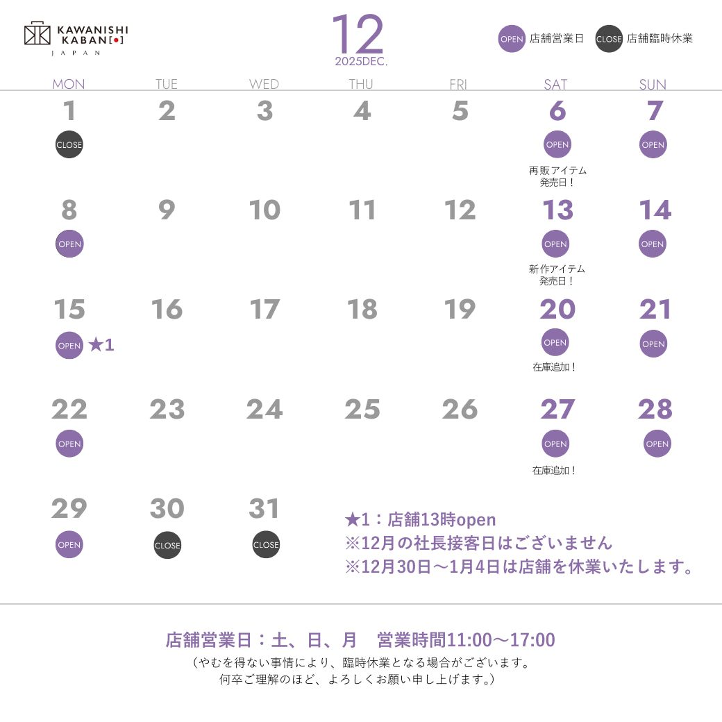 The newest release from the new project "Kawanishi Bag Lab" is the shoulder bag "soro." This bag is based on a new concept and is full of Kawanishi Kaban's challenges. ↓Click here for a detailed explanation of "Kawanishi Bag Lab"....